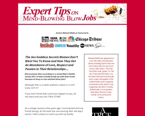 A tasteful yet thorough guide on the art of oral sex. A must for any woman who wants to give oral pleasure to her husband. Brought to you by Oprah relationship expert. Affiliate resources — https://blowtips.com/affiliate-program