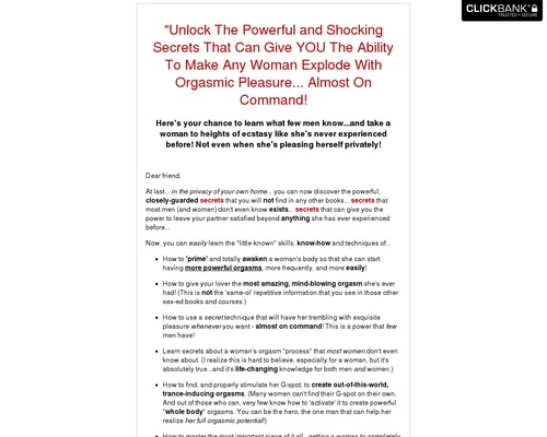 Boost your affiliate commissions with 75% payout, while helping men discover powerful secrets to give women mind-blowing orgasmic pleasure.