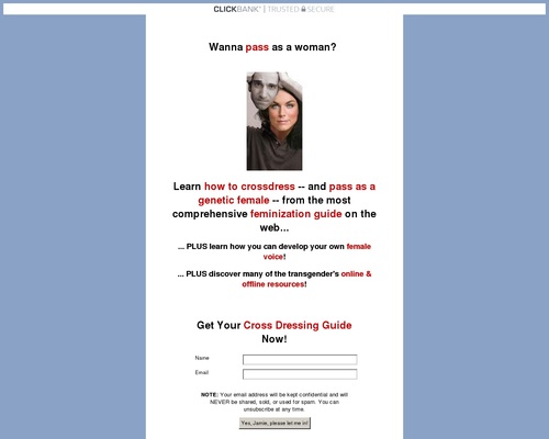 The Only Cross Dressing Guide On The Web. Pays 50% Commission. Very Unique Product. Affiliates Must See. Extremely High Conversation Rate!