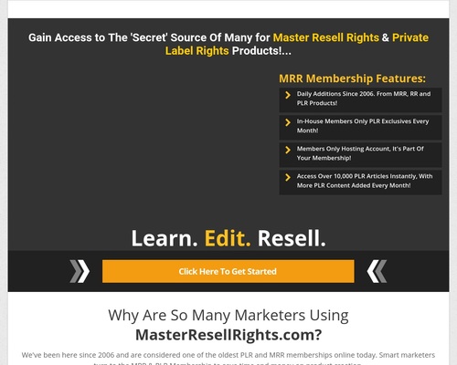 Are you ready to gain instant access to products with master resell rights, private label rights, and a massive collection of PLR Products? On top of this, tools, resources, training and dedicated support to help you propel your online business?I am going to let you in on a secret.Have you ever been bombarded with email after email promoting the latest product?Have you ever wondered how that Internet marketing expert managed to come up with such a product that you just couldn’t resist?Chances are….it’s a master resell rights or private label rights product that they’ve flipped, repackaged, and then broadcast to their list!What if I told you right now that you too can have at your disposal a never ending supply of products that you can learn from, edit and sell, would you be willing to beat the gurus at their own game? And what if I told you that you could join FREE today and receive a steady flow of PLR and resell rights weekly?MasterResellRights.com is a one way ticket to building a web presence by cutting out all the middle men and outsourcing!To build a web business can take time, effort and a lot of investment, but you’re about to take one giant leap in the right direction, because selling your own product online is, and will always be right at the top of the list for pure profit potential!However, creating your own product can be very difficult, you need to research, write or record, create graphics, then even write a compelling sales copy! None of those tasks are easy unless you have years of training, that’s where Master Resell Rights and Private Label Rights come into the equation!