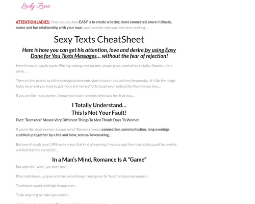 That’s why, in addition to getting Sexy Texts Cheat Sheet, you’re also receiving a 14 day FREE trial to Lady-Zone PREMIUM Club.