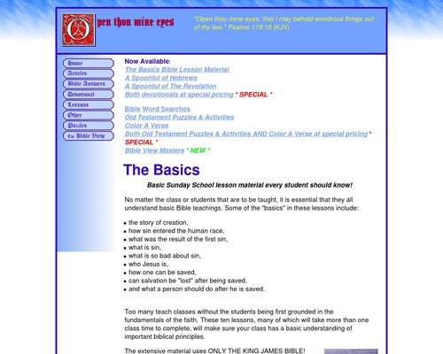 Typeset for classroom, homeschool, and personal usage are devotionals on Hebrews and The Revelation, an Old Testament activity book, The Basics Bible lessons, Bible Word Searches and a Color-A-Verse coloring workbook. Only the King James Bible is used!